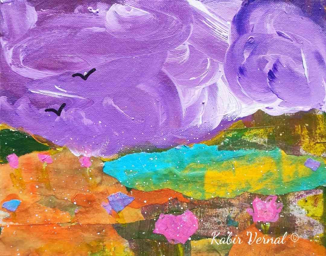 Acrylic Painting and Collage on Canvas Board